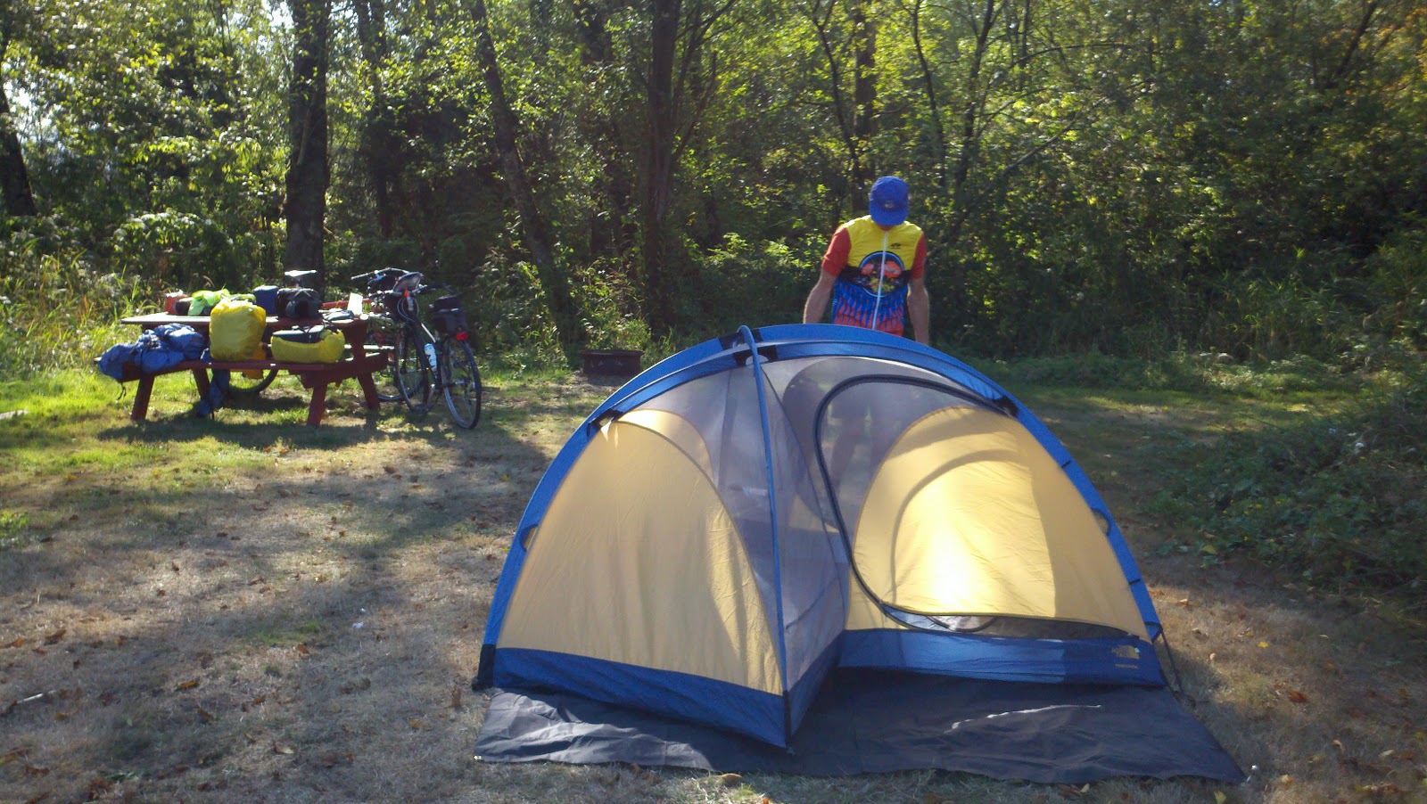 | Our sunny, dry campsite…we FINALLY are camping (Friday) |